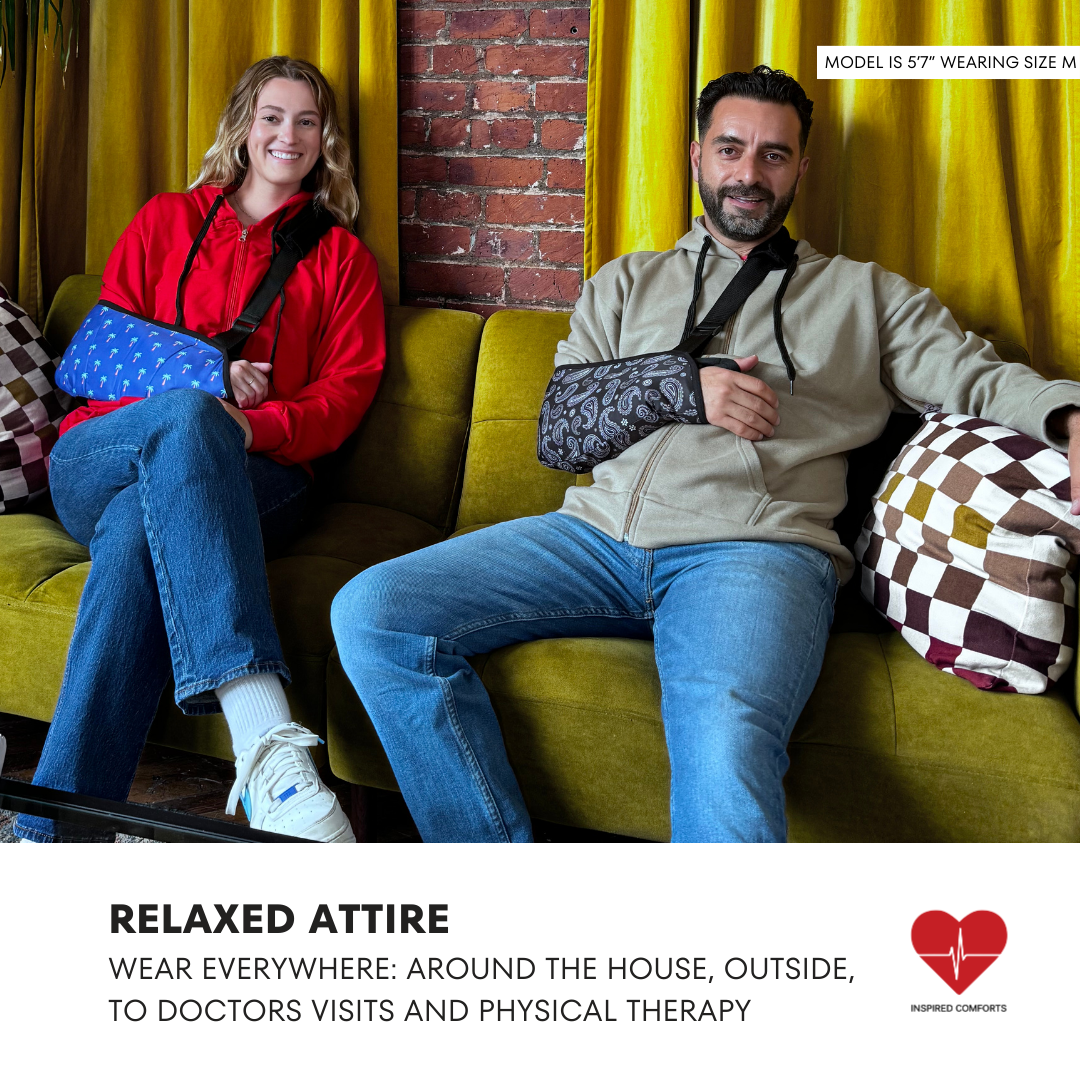 [ Fabric and style ] High-quality printed polyester fabric. Crafted for easy and hassle-free dressing, the sling can be worn around a cast, bandage, or dressing.