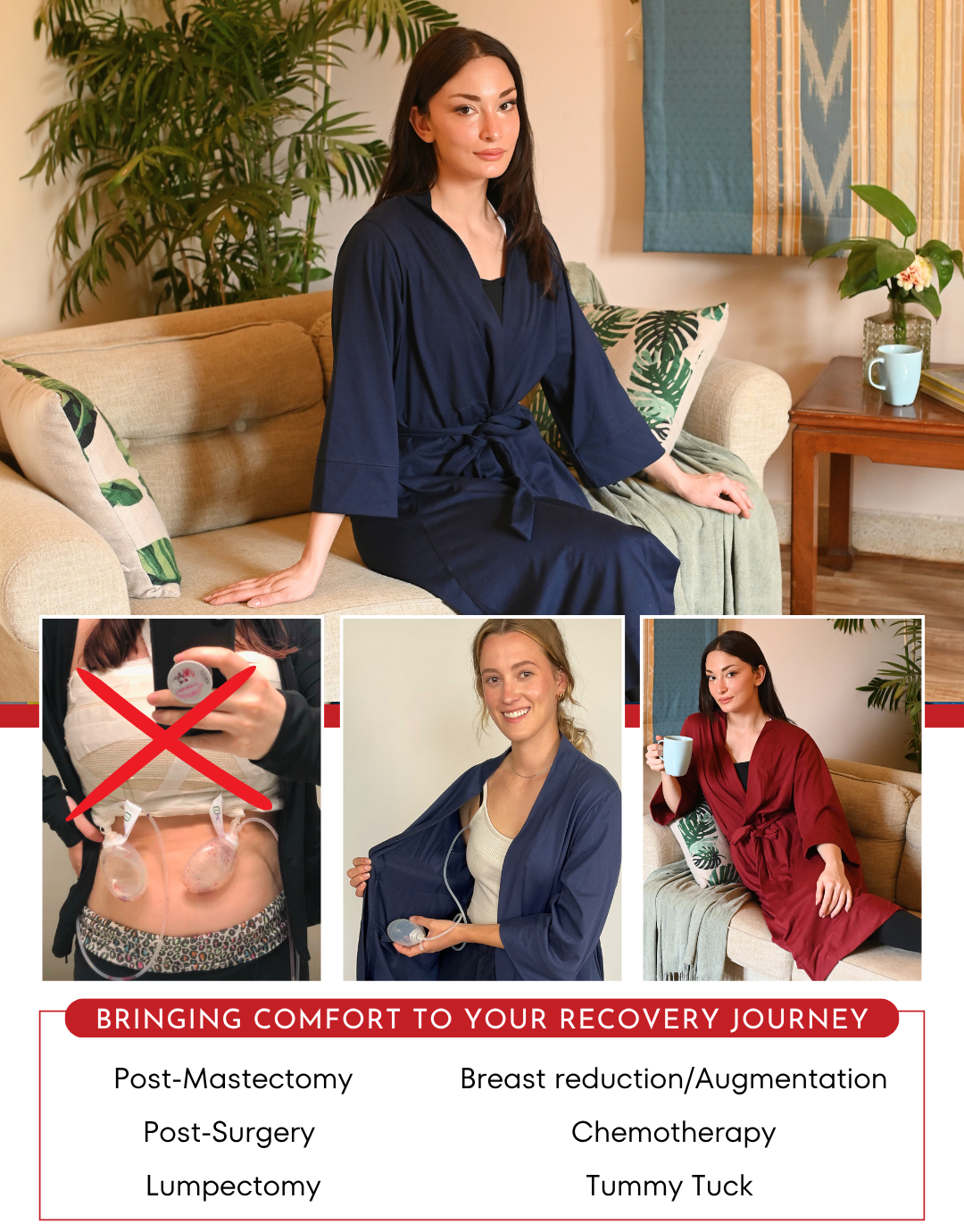 Breast Cancer Post Surgery Mastectomy Recovery Robe with Internal Drain Pockets