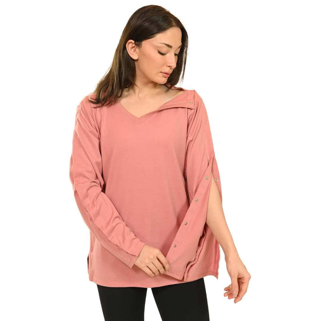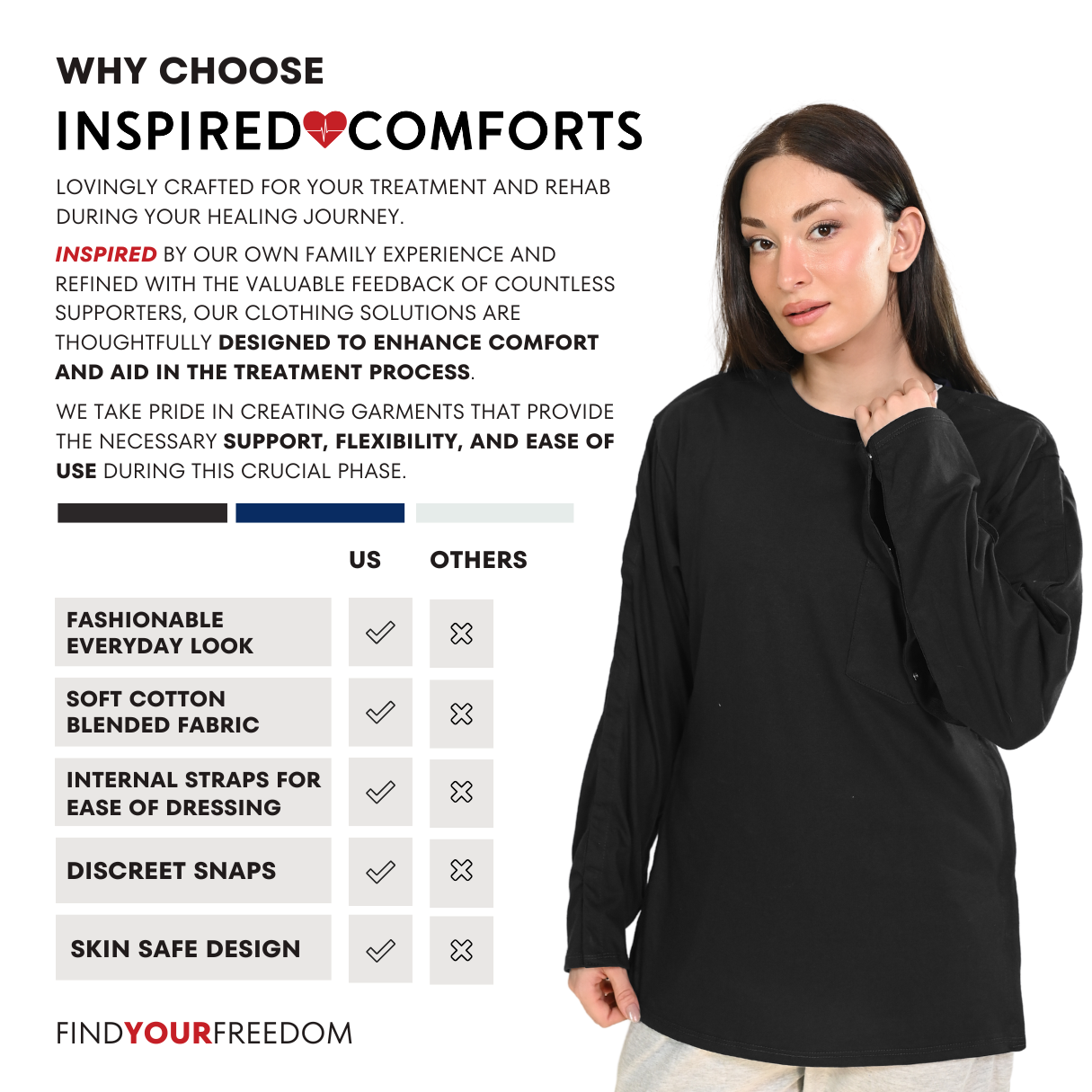 Dialysis Unisex Post Surgery & Rehab Dual Access Crew Neck Snap Full Sleeve Shirt | Easy Open Shoulder, Arm & Side Snaps