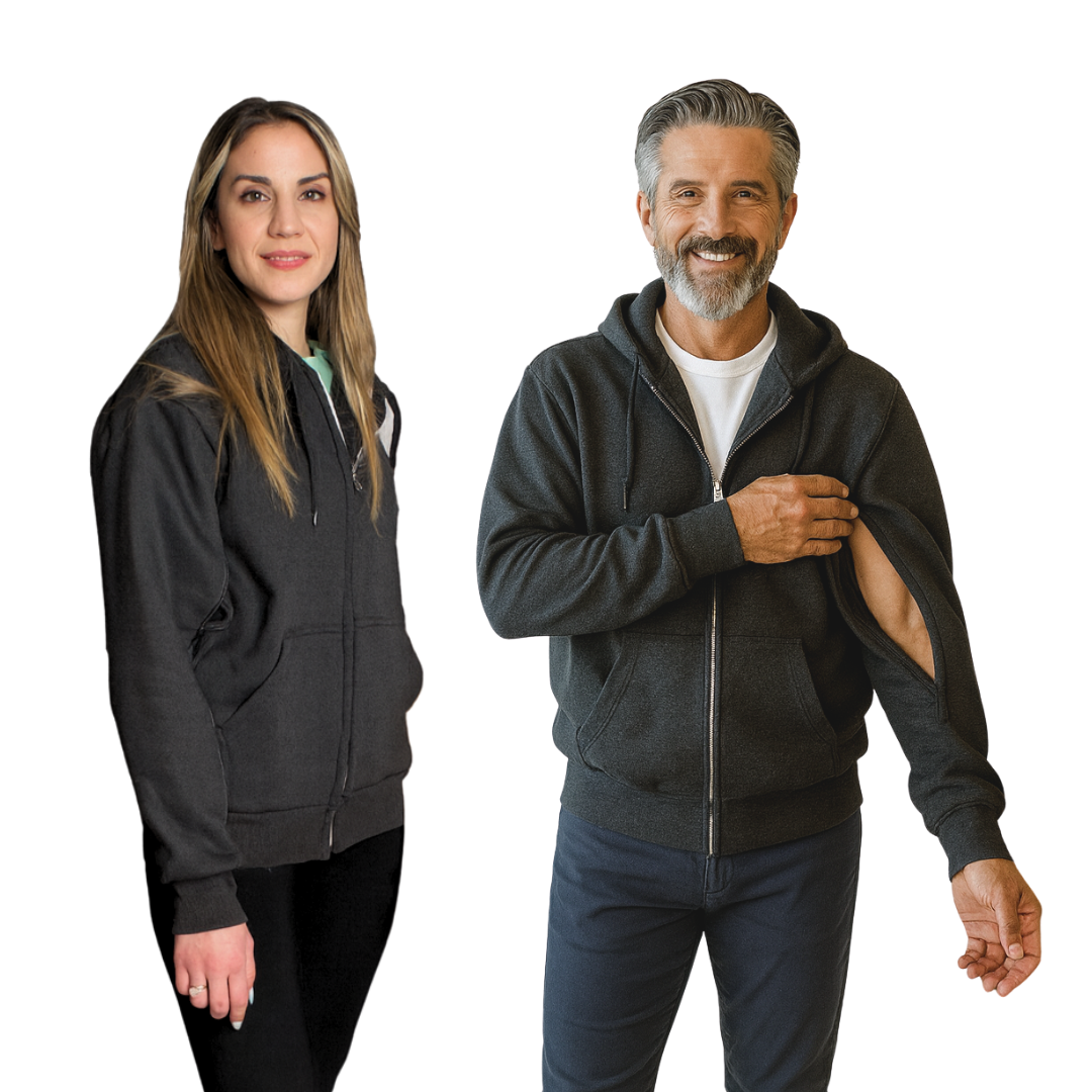 Two way zip sleeves for cozy comfort and easy access during infusion...