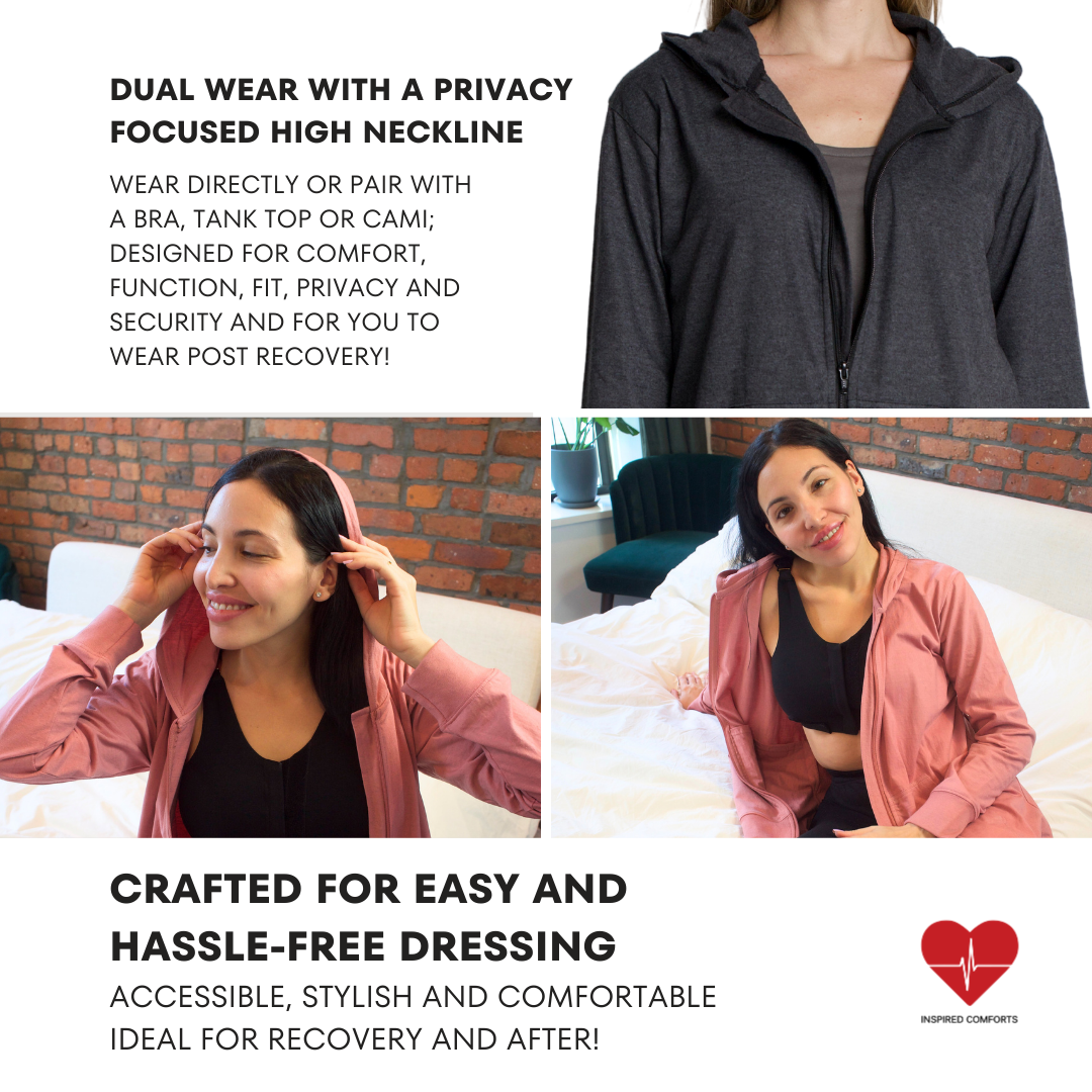 [ Fabric Suitable for Healing ] Made from a lightweight, hypoallergenic COTTON BLEND, this hoodie is designed to feel like a comforting embrace. Its breathable fabric is perfect for sensitive skin, making it ideal for post-mastectomy recovery.