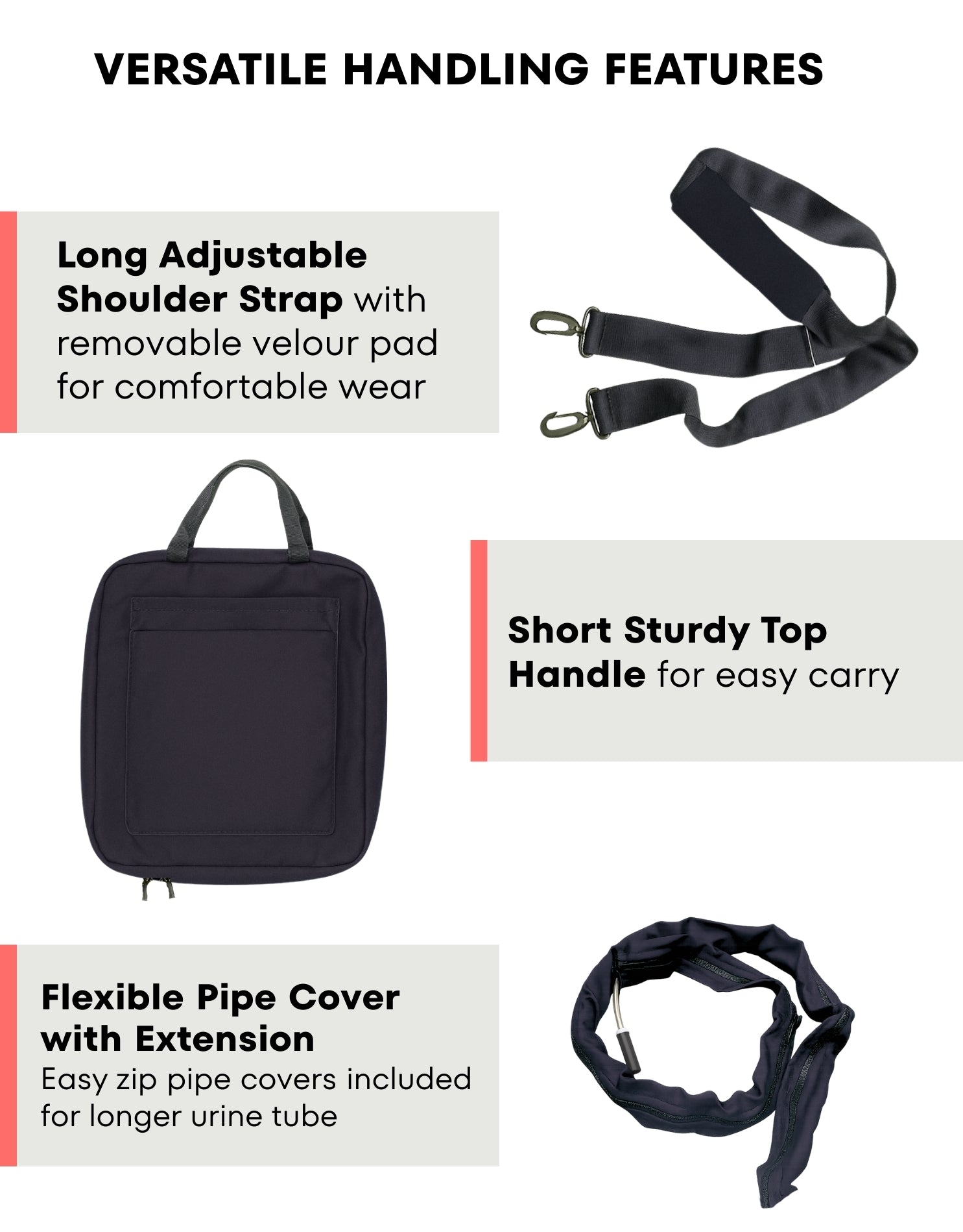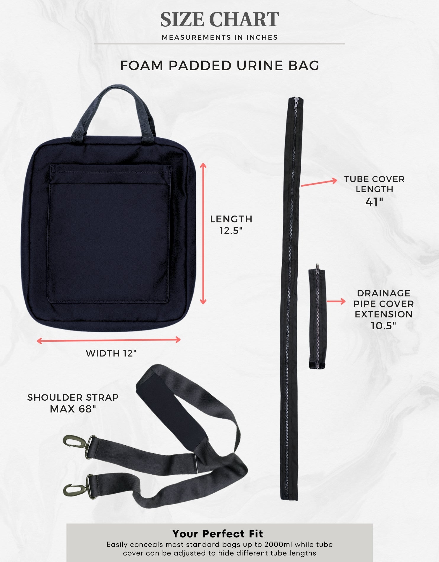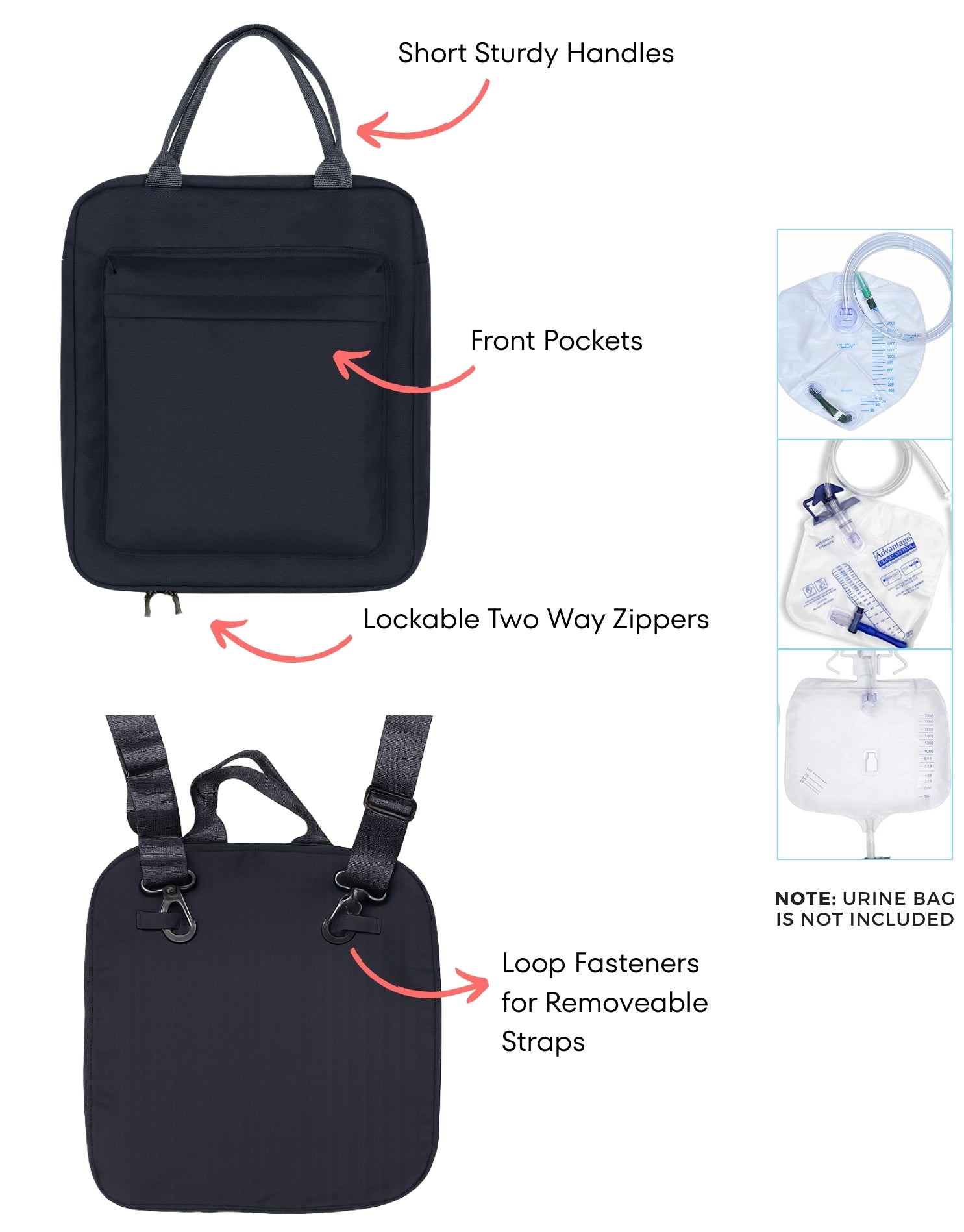 Inspired Comforts Catheter Urine Bag Cover with Easy Access Zippers – Adjustable Strap, Zipper Tube Cover & Front Pocket – Discreet & Travel-Friendly