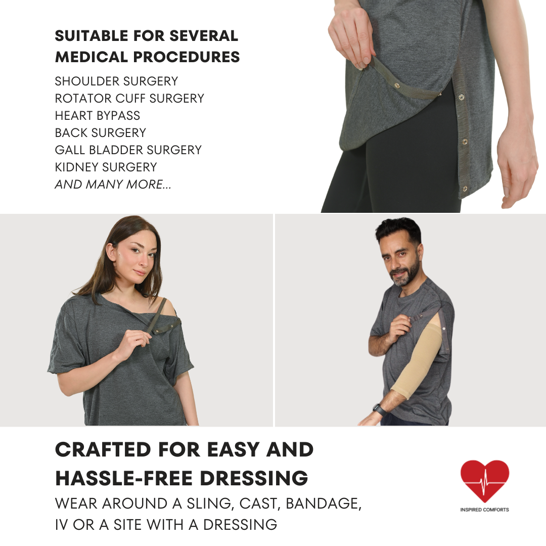 Soft, very comfortable, and easy to put on while recovering from shoulder surgery. It’s been a lifesaver!