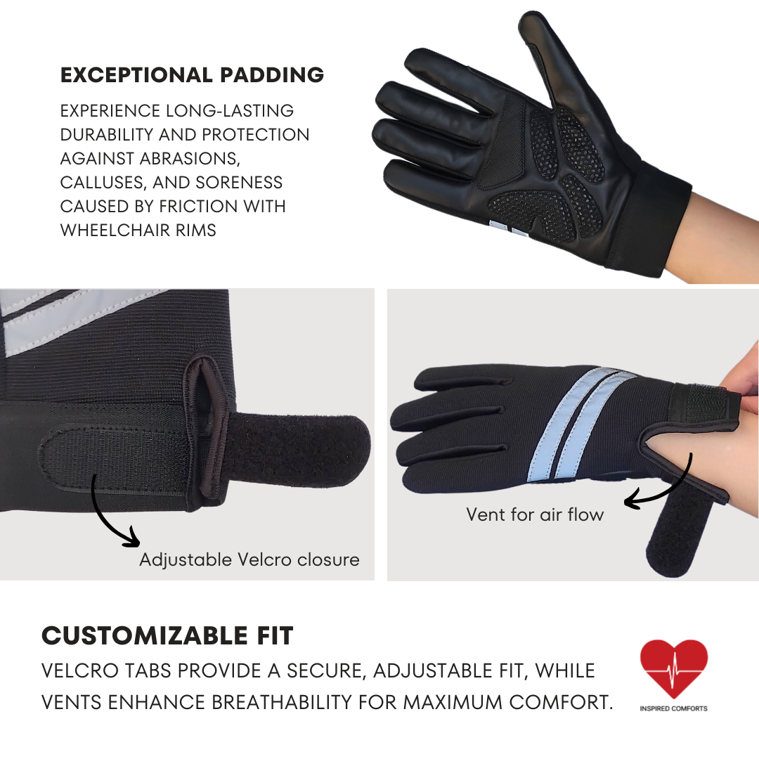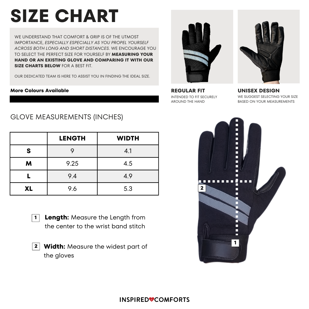 Padded Comfort: We understand the importance of comfort during extended wear. These gloves feature strategically placed padding to reduce pressure and minimize fatigue with wheelchair mobility, ensuring a comfortable experience even during prolonged use.