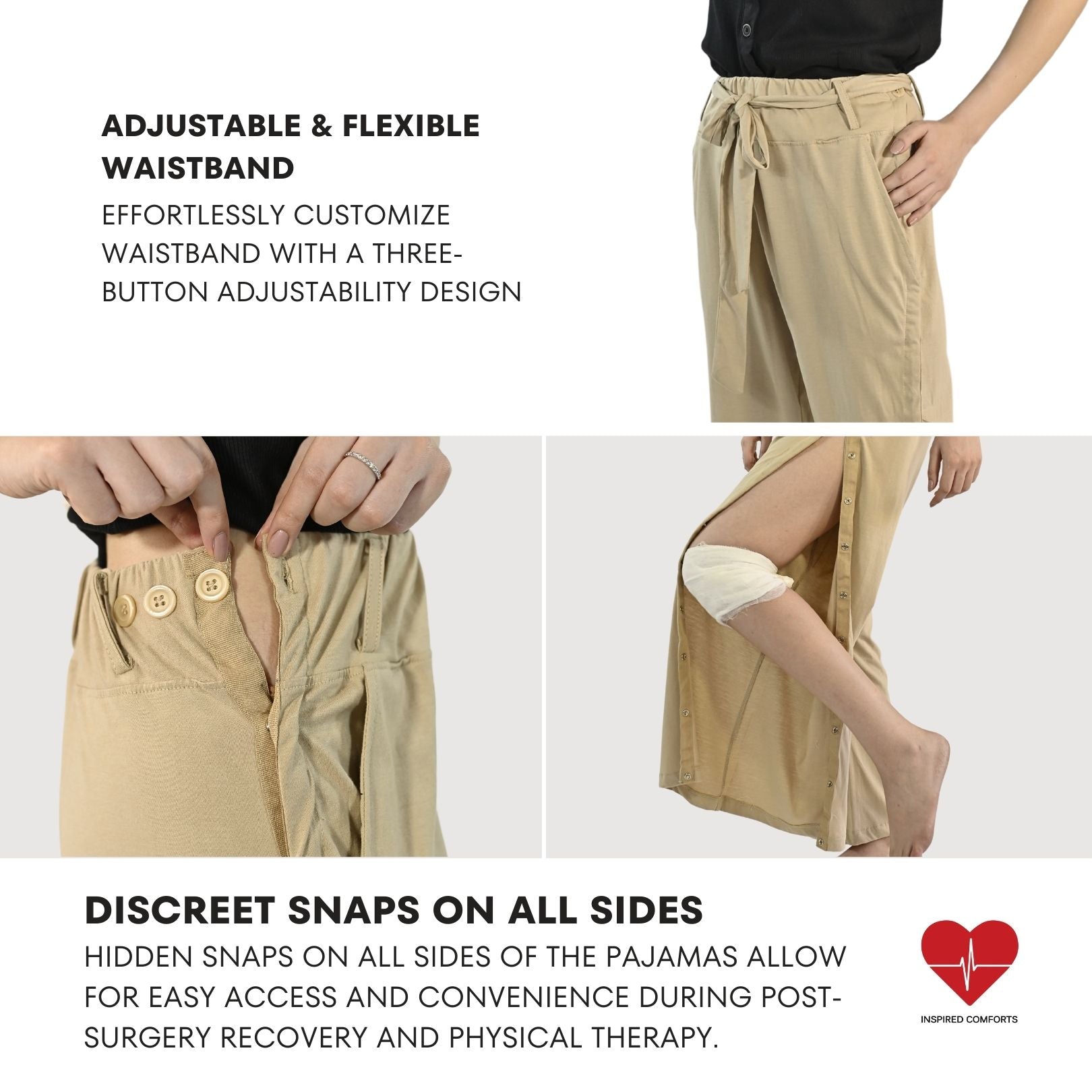 [ Dignity Built Into Every Stitch ] These pants feature SNAP CLOSURES along the legs and ADJUSTABLE WAISTBAND ensures comfortable fit. Wear them fully snapped or partially open based on your need. They are tailored for surgery recovery, knee replacement, hip surgery, physical therapy, and limited mobility.