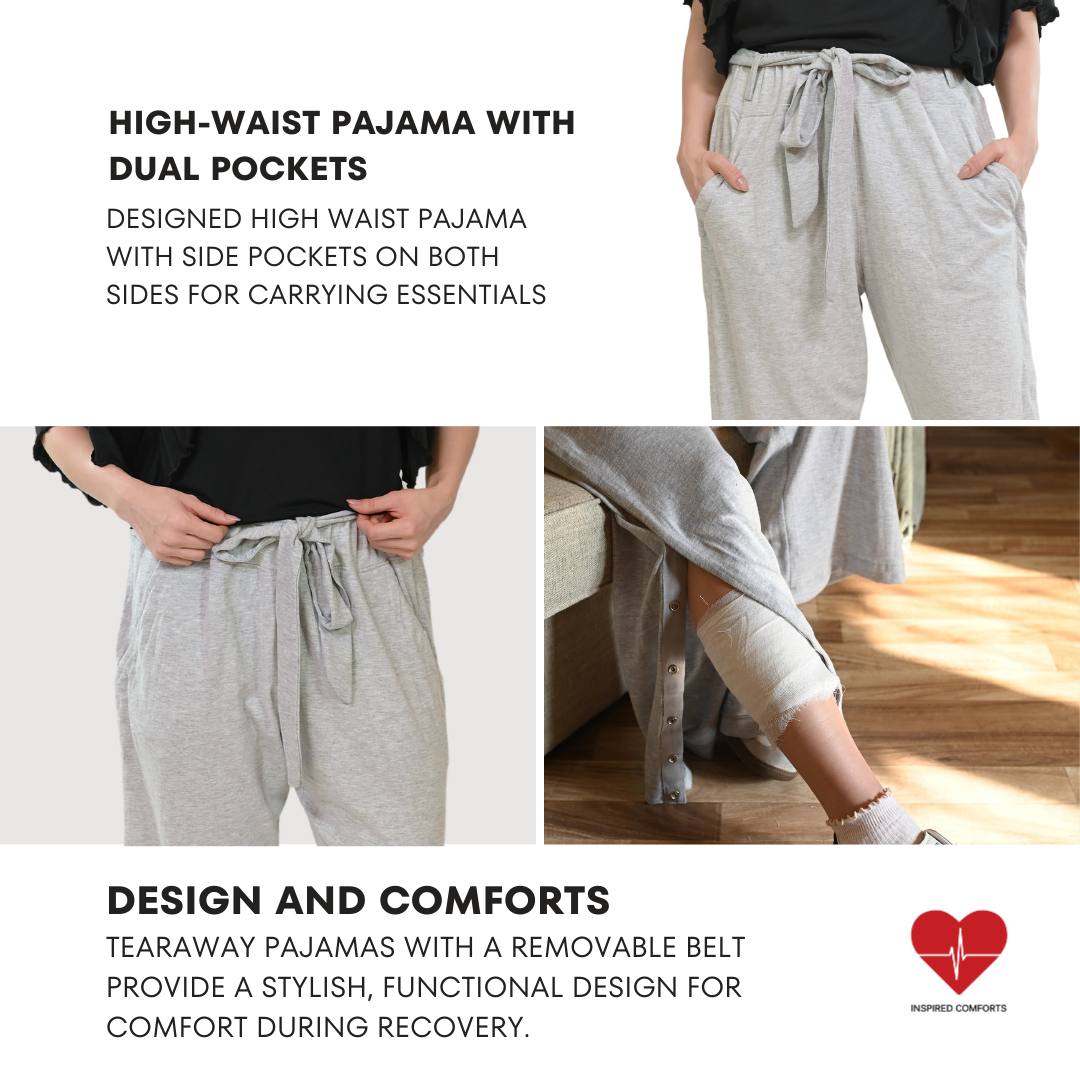 [ Designed with Thoughtful Touchpoints ] Our Pajama Pants include a stylish TYING BELT, offering adjustability and flexibility. The WIDE-LEG STYLE ensures comfort and ease, while SIDE POCKETS on both sides provide convenient storage for essentials during your recovery.