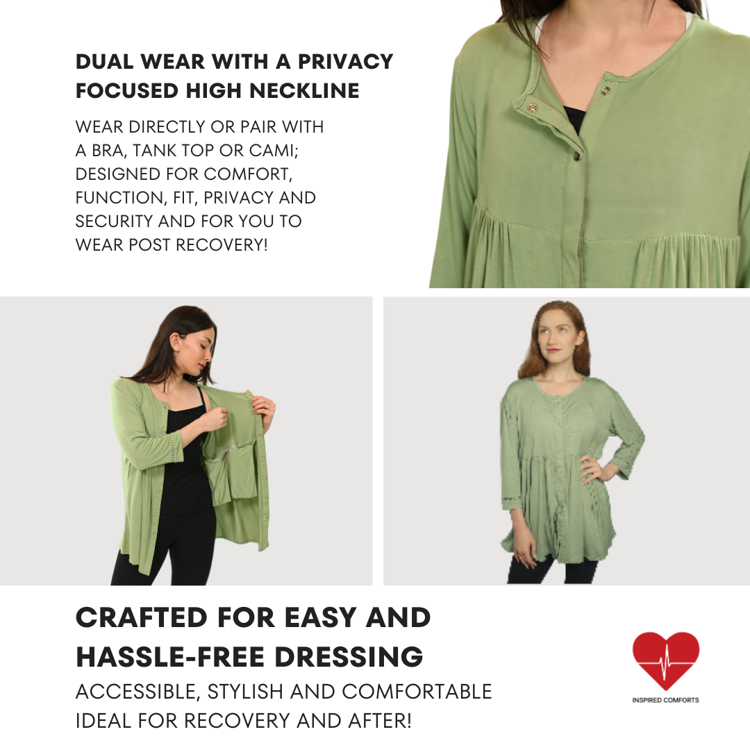 [Confidence Through Every Stage] Whether layered with a bra, tank, or worn alone, this top adapts to your journey. Its high neckline offers ADDED PRIVACY, while the stylish design ensures you look and feel your best—during recovery and well into everyday life.