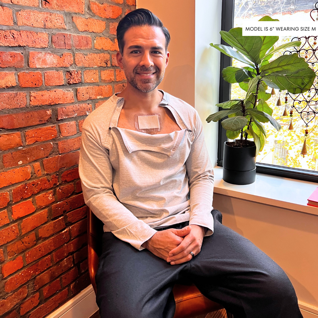 Unisex full-sleeve shirt with discreet port zippers for comfort, dignity, and ease....